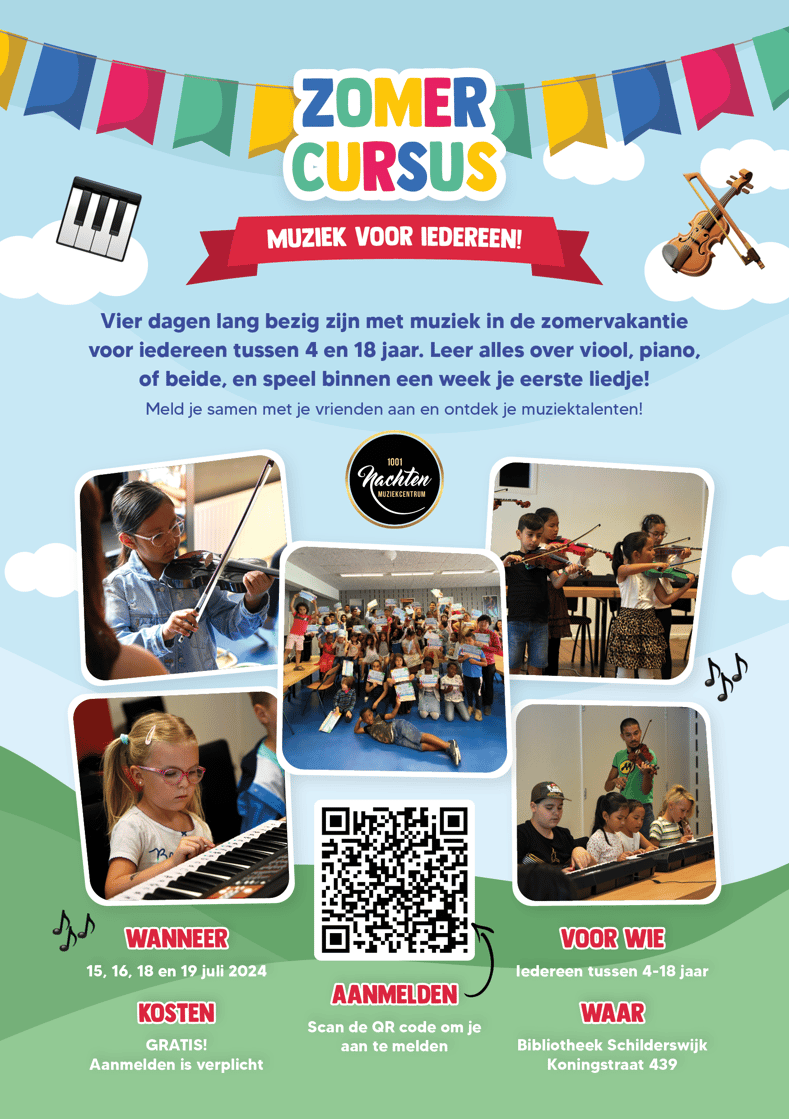 Na afloop van de cursus kan jij je eerste muziekstuk spelen, We sluiten de cursus af met een eindconcert en een lekkere snack. Zien wij jou ook deze zomer? Meld je snel aan, want het aantal plekken is beperkt. Na aanmelding krijg je van de coördinator te horen in welke groep en tijd je bent ingedeeld.